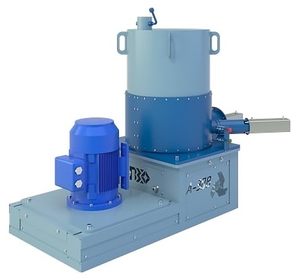 Принцип работы: сырье загружается через загрузочное окно в рабочую камеру, где измельчается вращающимися ножами в хлопья, которые за счет трения о корпус разогреваются и спекаются в мелкие аморфные гранулы, в момент достижения массы близкой к плавлению густой консистенции оператор порционно подает в камеру воду, возникает термический шок, масса разделяется на относительно равные отдельные фракции, затем некоторое время сушится и выгружается в заранее подготовленную тару.