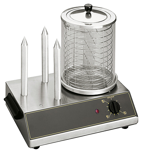 Аппарат для хот-догов Roller Grill CS 3 E предназначен для отваривания сосисок и подогрева булочек на предприятиях общественного питания и торговли. Модель оснащена паровой баней, системой регулировки мощности, 3 нагреваемыми штырями, корзиной с 2 отсеками и световым индикатором. Корпус выполнен из нержавеющей стали, штыри - из алюминия, цилиндр - из стекла.