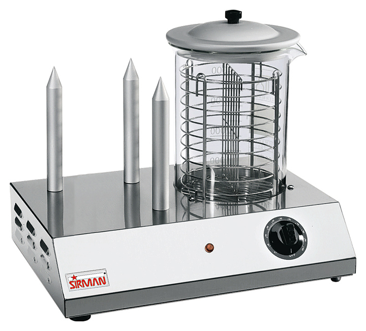 Аппарат для хот-догов Sirman Y09 3 используется на предприятиях общественного питания и торговли для отваривания сосисок и подогрева булочек. Модель оснащена 3 штырями для булочек и электрическими компонентами с автономной защитой при возможных утечках жидкости.