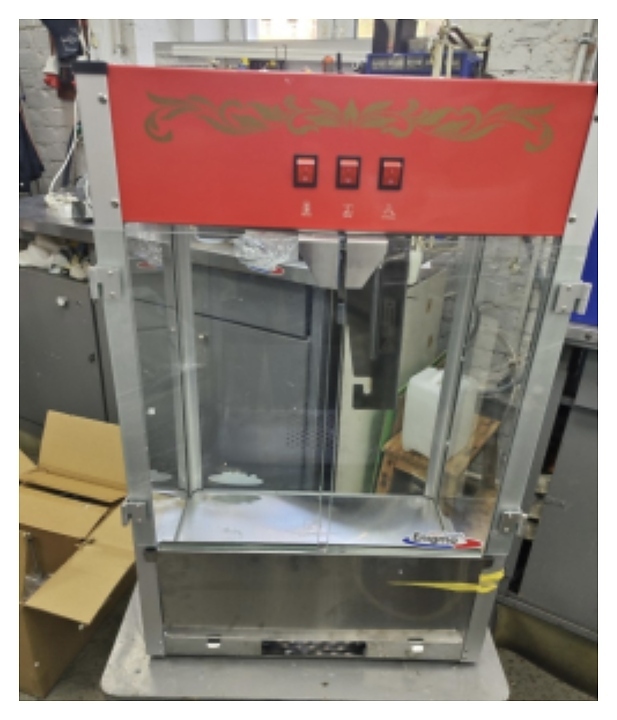Аппарат для попкорна Enigma 8238 используется на предприятиях общественного питания и торговли, в развлекательных центрах и кинотеатрах, а также на открытых площадках для приготовления воздушной кукурузы с различными вкусовыми добавками. Купол и стойки выполнены из стали.