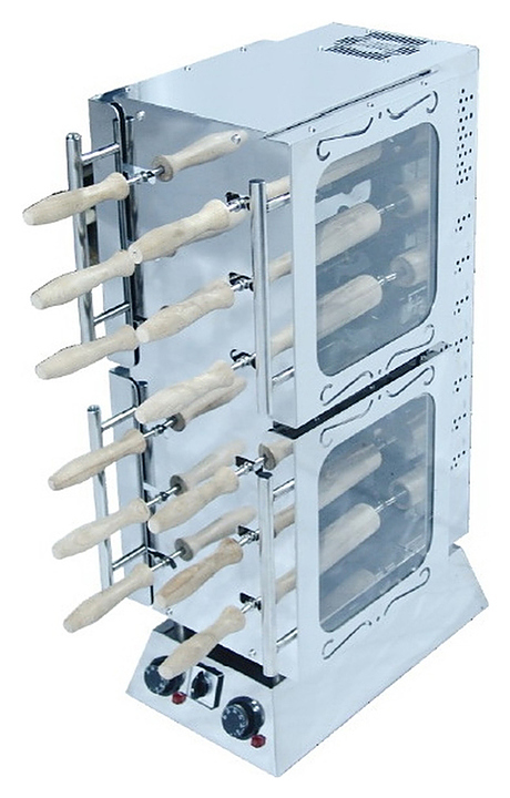Аппарат для трдельников Grill Master Ф6ШМЭ используется на предприятиях общественного питания и торговли, в пекарнях и кондитерских для выпечки венгерских калачей. Модель оснащена 2 камерами с раздельным включением, дверями со стеклянными окошками и раздельным приводом каждого вала с защитой от перегрузки. Корпус выполнен из высококачественной нержавеющей стали, валы для выпечки - из бука.