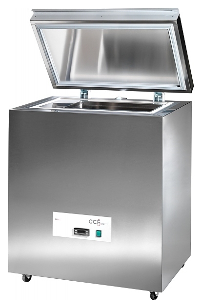 Сушильный аппарат CCF S/2 используется на предприятиях общественного питания и торговли для удаления остаточной влаги с поверхности крафтового мороженого на палочке после эскимогенратора. Модель оснащена съенмной внутренней ванной и 4 колесами. Ванна выполнена из нержавеющей стали.