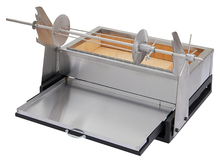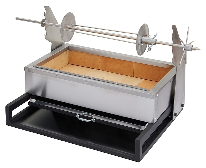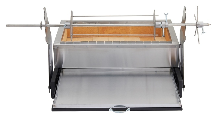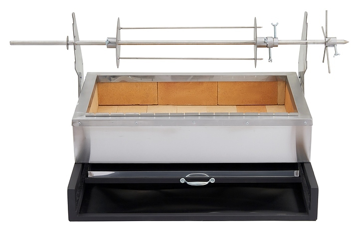 Универсальный горизонтальный угольный аппарат GRILLODA ШУГ-1 предназначен для приготовления шаурмы и шашлыка с использованием углей на предприятиях общественного питания и торговли. Корпус выполнен из жаропрочной антикоррозийной стали, облицован нержавеющей сталью и покрыт термостойкой огнеупорной краской, выдерживающей нагрев до 1200 °С, внутренняя отделка - из огнеупорного шамотного кирпича толщиной 40 мм.