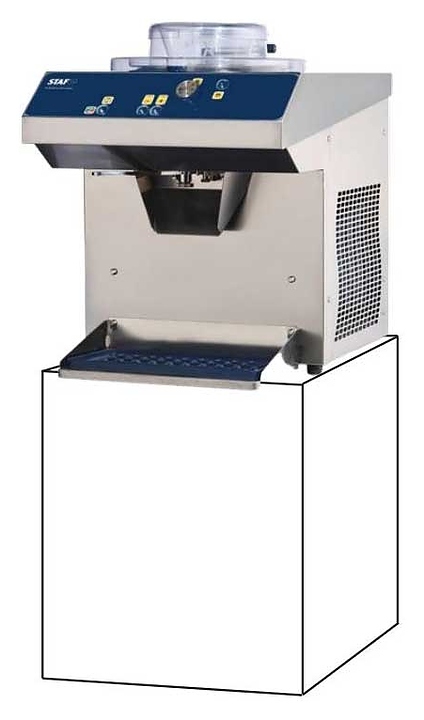 Настольный батч-фризер STAF59 BTE150 A используется в барах, кафе, на открытых летних площадках, в специальных отделах супермаркетов и торговых центрах для приготовления твердого мороженого и джелато. Модель оснащена прямым приводом с редукторами для снижения вибраций и колебаний, а также предотвращения проскальзывания, регулировки и замены ремней. Мешалка с 3 скоростями обеспечивает дозирование небольших объемов смеси с сохранением оптимальной структуры и облегчения операций экстракции и очистки. Двойная прозрачная крышка позволяет контролировать изменение смеси на протяжении всего этапа работы и гарантирует безопасную загрузку ингредиентов при работающей мешалке. Корпус и мешалка выполнены из нержавеющей стали, скребки - из полиэтилена.