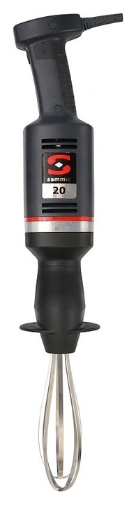 Погружной блендер Sammic B-20 предназначен для взбивания, смешивания и измельчения пищевых продуктов на предприятиях общественного питания и торговли. Модель оснащена двухцветным светодиодным сигнальным индикатором питания и активации работы. Покрытие корпуса выполнено из полимера черного цвета с матовой противоскользящей поверхностью, венчик – из нержавеющей стали.