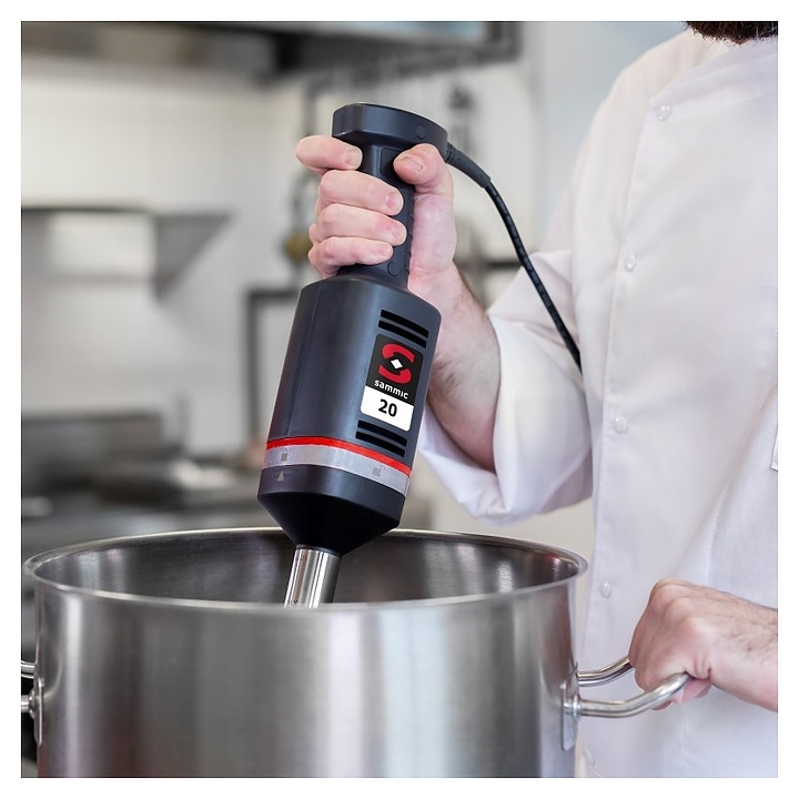 Погружной блендер Sammic XM-21 предназначен для взбивания, смешивания, измельчения продуктов питания на предприятиях общественного питания и торговли. Модель оснащена регулятором скорости, световым индикатором подключения к электросети и эргономичной противоскользящей ручкой. Y-образный нож с долговечной режущей кромкой выполнен из закаленной стали.