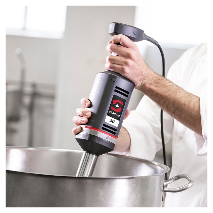 Погружной блендер Sammic XM-32 предназначен для взбивания, смешивания, измельчения продуктов питания на предприятиях общественного питания и торговли. Модель оснащена двухцветным световым индикатором, указывающим состояние аппарата и эргономичной противоскользящей ручкой. Y-образный нож с долговечной режущей кромкой выполнен из закаленной стали.