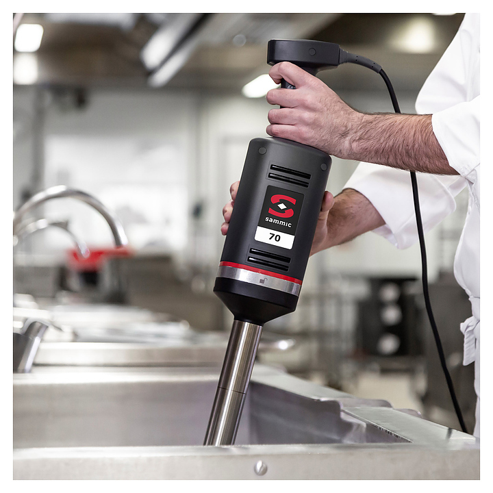 Погружной блендер Sammic XM-72 предназначен для взбивания, смешивания, измельчения продуктов питания на предприятиях общественного питания и торговли. Модель оснащена двухцветным световым индикатором, указывающим состояние аппарата и эргономичной противоскользящей ручкой. Y-образный нож с долговечной режущей кромкой выполнен из закаленной стали.
