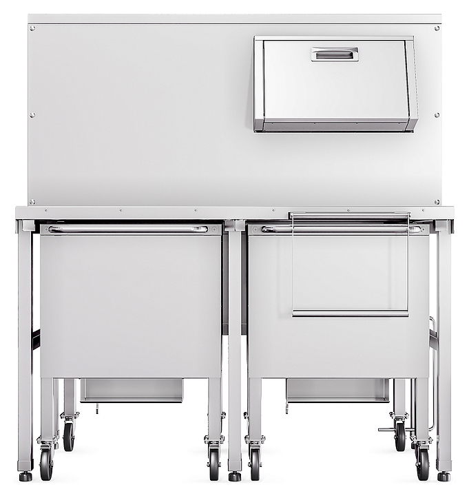 - Вместимость чешуйчатого льда в одном подкатном бункере: 70 кг
