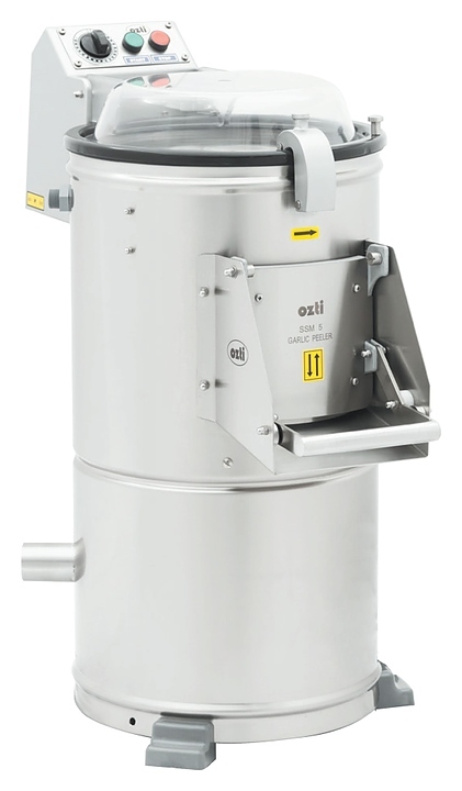 Чеснокочистка OZTI SSM5 используется на предприятиях пищевой промышленности, общественного питания и торговли для автоматической мойки и очистки чеснока от кожуры путем трения продукта о вращающиеся внутренние элементы конструкции. Модель оснащена электромеханической панелью управления. Корпус цилиндрической формы и чистящий диск выполнен из нержавеющей стали, верхняя крышка – из поликарбоната.