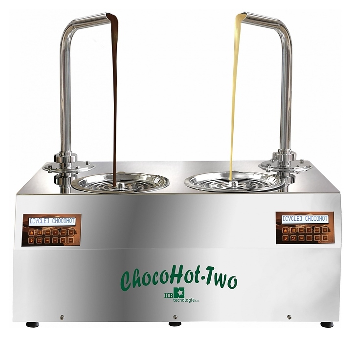 Диспенсер для шоколада ICB tecnologie s.r.l. ChocoHot Two используется в кондитерских, на предприятиях пищевой промышленности и общественного питания. Модель оснащена 2 кранами, 2 ваннами для шоколада и стандартным носиком. Корпус выполнен из нержавеющей стали.