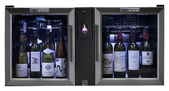 Вакуумный диспенсер для вина Bermar BC403S серии Pod Bar с 2 горизонтальными винными шкафами используется в барах и ресторанах для хранения и организации продажи розлива тихого вина по бокалам без потери их качества в течение 21 дня, демонстрации и охлаждения вина до необходимой температуры. Модель оснащена уникальной запатентованной технологией Le Verre de Vin, обеспечивающей идеально точный уровень вакуума, который остается стабильным, независимо от количества вина, оставшегося в бутылке. Корпус выполнен из нержавеющей стали с черной отделкой, дверцы и дверные ручки - из нержавеющей стали.