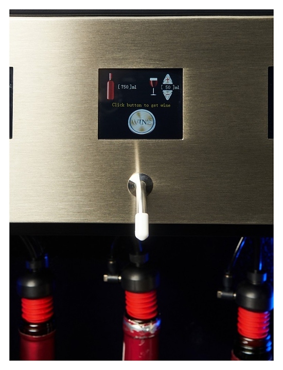 - Графическая и цифровая индикация объема оставшегося в бутылках вина и заданной порции в миллилитрах