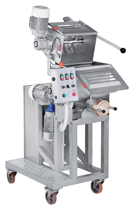 Автоматический экструдер La Monferrina P50 используется на предприятиях пищевой промышленности, общественного питания и торговли для производства коротких и длинных макаронных изделий из любого типа муки и манной крупы, также возможна непрерывная раскатка теста для подачи на формовочные машины. Модель оснащена горизонтальным тестомесом с перфорированной крышкой и электромеханическим блоком управления. Корпус и контактирующие с продуктом компоненты выполнены из нержавеющей стали, фильера (формовочная матрица) – из бронзы.