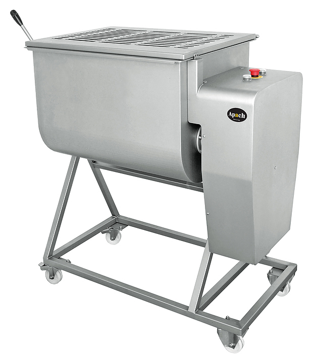 Фаршемешалка Apach AMK100 используется на предприятиях общественного питания и торговли для перемешивания измельченного мяса или рыбы в однородную смесь. Вымешивающее устройство лопастного типа позволяет получить фарш однородной консистенции. Модель оснащена защитной крышкой с микровыключателем для блокировки работы при открывании. Корпус и съемная лопасть выполнены из нержавеющей стали.