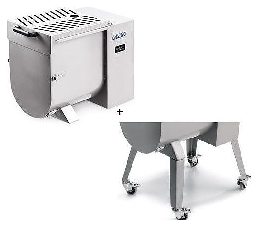Фаршемешалка Apach AMK50 используется на предприятиях общественного питания и торговли для перемешивания измельченного мяса или рыбы в однородную смесь. Вымешивающее устройство лопастного типа позволяет получить фарш однородной консистенции. Модель оснащена крышкой с микровыключателем, функцией реверса, высокими ножками и колесами. Корпус и съемная лопасть выполнены из нержавеющей стали AISI 304.