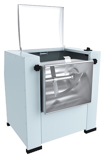 Фаршемешалка Пищевые Технологии ФМ-25 используется на предприятиях общественного питания и торговли для равномерного перемешивания ингридиентов для приготовления мясного фарша, салатов и различных начинок. Модель оснащена электродвигателем, ременной и зубчатой передачами, подвижной горизонтальной осью с месильным органом и стационарной дежой с защитной откидной крышкой. Корпус выполнен из конструкционной стали с антикоррозийным полимерным покрытием, дежа и месильный орган изготовлены из высококачественной нержавеющей стали марки AISI 304.