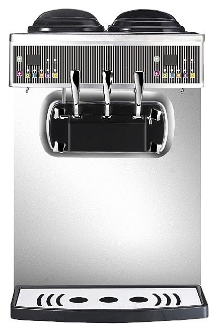 Настольный фризер Pasmo S230F используется на предприятиях общественного питания и торговли для приготовления мягкого мороженого, замороженного йогурта, муссов или сорбетов 2 различных вкусов, а также их смешанного варианта. Модель оснащена воздушным насосом, 2 цилиндрами с шнеками, 2 бункерами с крышками, подставкой для готового продукта с каплесборником, устойчивыми опорами, диспенсером с 3 рукоятками, панелью управления с символьным меню и 2 информативными дисплеями. Корпус выполнен из нержавеющей стали с матовой поверхностью, емкости, шнеки и аэраторные трубки – из высококачественной пищевой нержавеющей стали SS304, рукоятки и фиксирующие винты диспенсера – из хромированного металла.