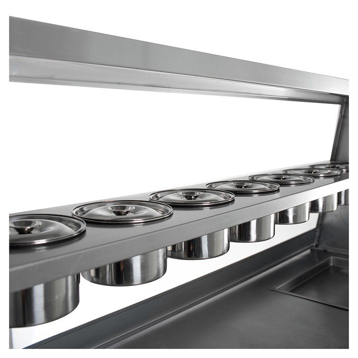Внимание! На фото аналогичная модель с другим количеством контейнеров без стола для топпингов.