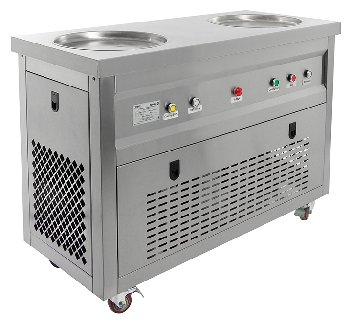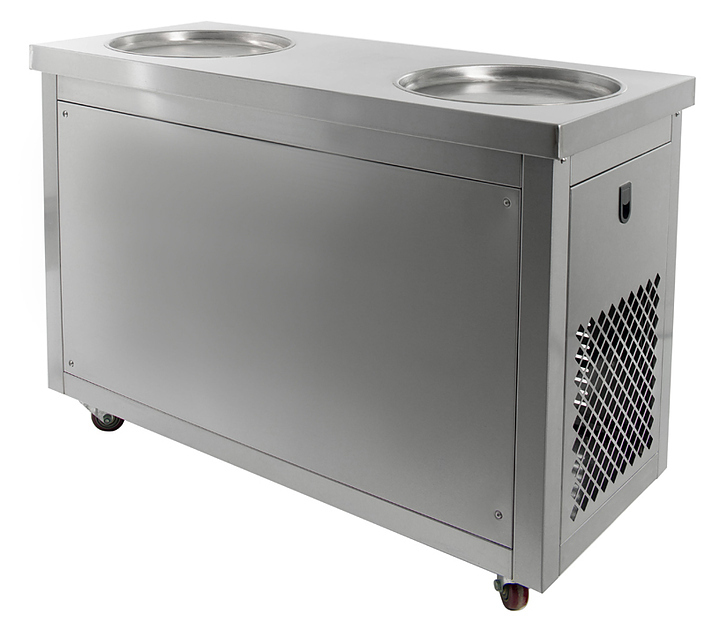 Фризер для мороженого Foodatlas KCB-2Y используется на предприятиях общественного питания и торговли для приготовления жареного мороженого в роллах. Модель оснащена механическим управлением, столом для топпингов, 2 круглыми охлаждаемыми поверхностями для "жарки" десерта при минусовой температуре и 4 колесами, 2 из которых снабжены тормозом. Корпус выполнен из нержавеющей стали 430, сковорода и контейнеры - из нержавеющей стали 304, радиатор - из алюминия.