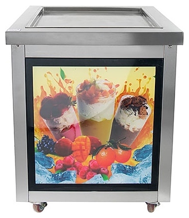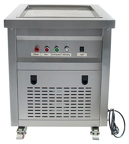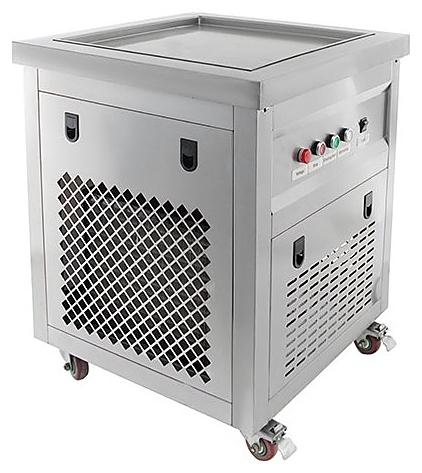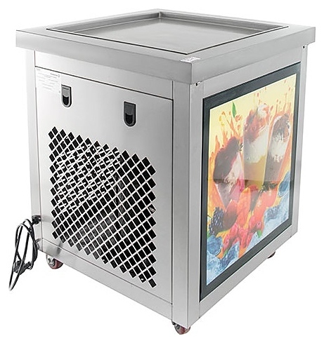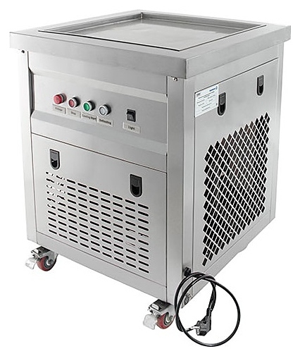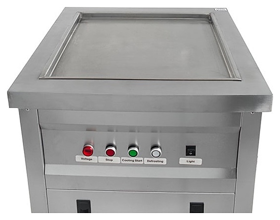 Напольный фризер для мороженого Foodatlas KCD-1F используется на предприятиях общественного питания и торговли для приготовления жареного мороженого в роллах. Модель оснащена компрессором, световым коробом, квадратной поверхностью для «жарки» десерта при минусовой температуре и последующего скручивания продукта в роллы, кнопочной панелью управления и кабелем питания с евровилкой. Корпус и рабочая поверхность выполнены из высококачественной нержавеющей стали, упаковка – из фанеры и картона.