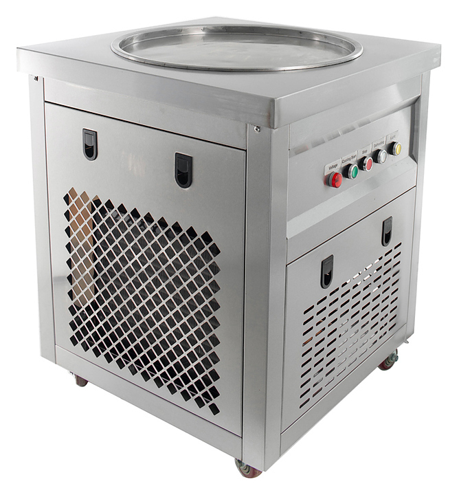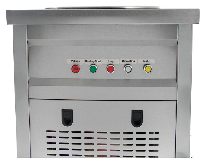Фризер для мороженого Foodatlas KCD-1Y используется на предприятиях общественного питания и торговли для приготовления жареного мороженого в роллах. Модель оснащена механическим управлением, световым коробом, круглой охлаждаемой поверхностью для "жарки" десерта при минусовой температуре и 4 колесами, 2 из которых снабжены тормозом. Корпус выполнен из нержавеющей стали 430, сковорода - из нержавеющей стали 304, радиатор - из алюминия, каркас светового короба - из оргстекла, полотно светового короба - из ПВХ.