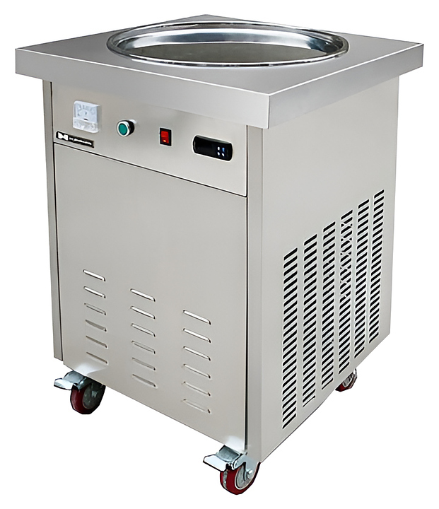 Фризер для жареного мороженого Hurakan HKN-FIC50 используется на предприятиях общественного питания и торговли для приготовления десерта на "ультрахолодной сковороде". Модель оснащена круглой рабочей поверхностью и колесами для легкого перемещения оборудования. Фризер работает на хладагенте R410a.