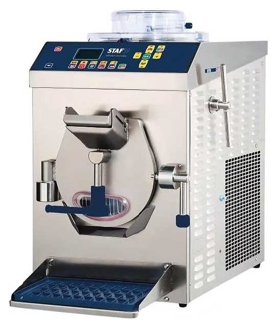 Фризер-пастеризатор STAF59 RHT4/20 A используется для приготовления мороженого и кондитерских кремов на предприятияx общественного питания и торговли. Пастеризация снижает бактериальную обсемененность сырья и свежих полуфабрикатов без ухудшения органолептических и питательных свойств продуктов. Верхний резервуар предназначен для термического/пастеризационного процесса, нижний - для заморозки партии. Перемещение смеси из верхнего бака в нижний возможно благодаря внутреннему дроссельному клапану. Корпус, дверь нижнего бака, мешалка и дроссельный клапан выполнены из нержавеющей стали, скребки нижнего бака - из полиоксиметилена, скребки верхнего бака - из полиэтилена.