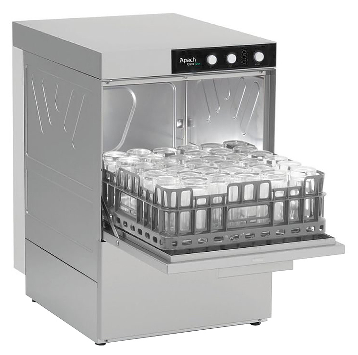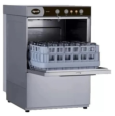 Фронтальная посудомоечная машина Apach AFTRD400 DD (919046) используется для мойки стаканов, чашек, тарелок, столовых приборов и прочего кухонного инвентаря на предприятиях общественного питания и торговли. Модель оснащена цельнотянутой моечной ванной, дверцей с двойными стенками для снижения уровня шума и улучшения теплоизоляции и электромеханической панелью управления. Корпус и моющие рукава машины изготовлены из нержавеющей стали.