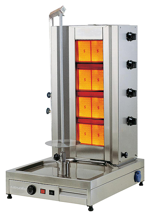 Газовый гриль для шаурмы OZTI 4GUD-W предназначен для обжарки большого количества различных видов мяса и птицы на предприятиях общественного питания, а также в производственных цехах, деятельность которых связана с выпуском гастрономических товаров. Корпус выполнен из нержавеющей стали.