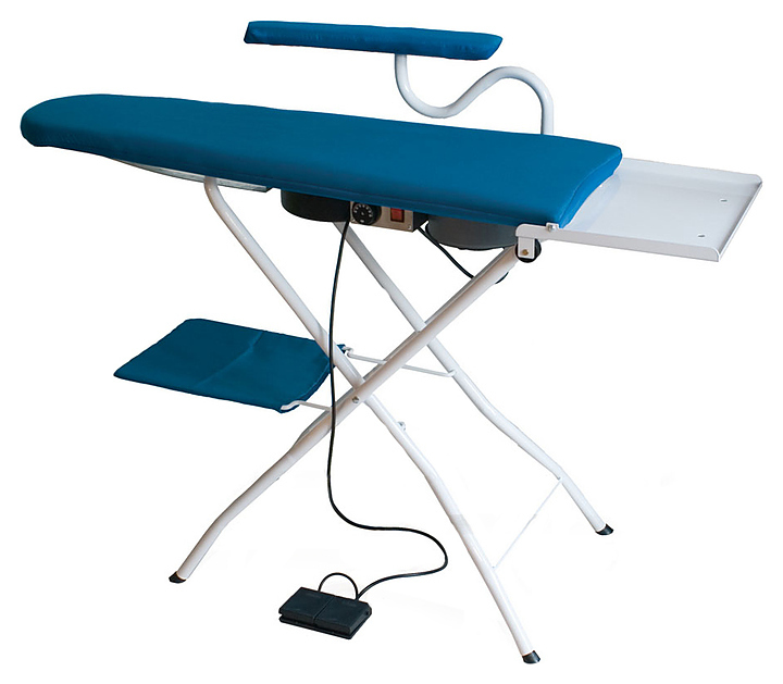 Профессиональная гладильная доска EOLO AT-01 используется в прачечных, отелях, гостевых домах и отелях для глажки белья и одежды. Модель оснащена большой подставкой для бойлера с утюгом, полкой для белья, поворотной рукавной платформой, термостатом от 30 до 90 °C, встроенной розеткой для подключения парогенератора и колесиками для перемещения в сложенном состоянии. Доска легко складывается для хранения.
