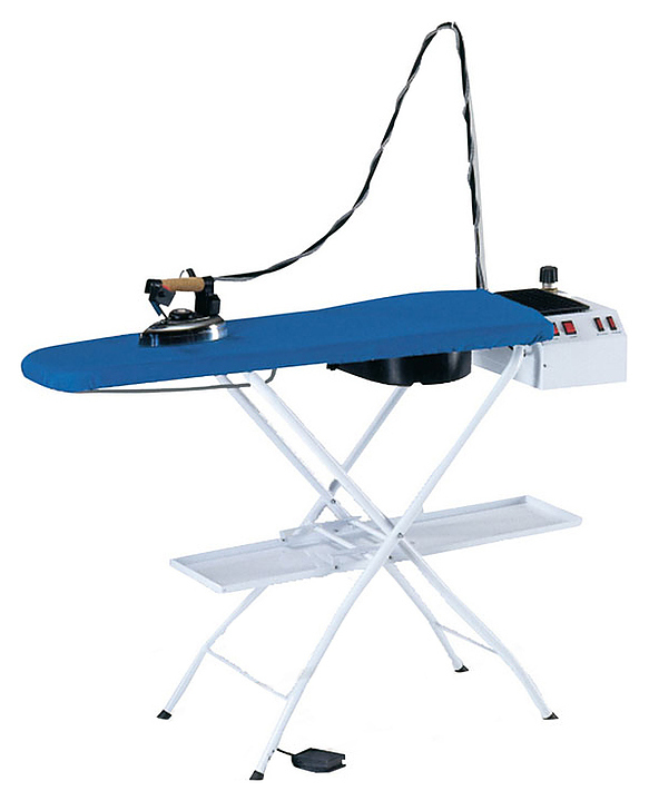Профессиональная гладильная доска EOLO AS-06 используется в прачечных, отелях, гостевых домах и отелях для глажки белья и одежды. Модель оснащена большой подставкой для бойлера с утюгом и полкой для белья.