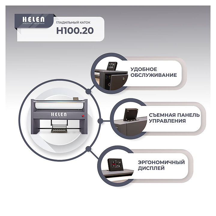 Гладильный каток HELEN H 100.20 используется в прачечных, гостиницах, салонах красоты, больницах и детских учреждениях для глажения различного белья с остаточной влажностью 15-20%. Оборудование имеет простую конструкцию, безопасно, надежно и подходит для применения даже неопытными работниками. Выглаженное белье возвращается в сторону оператора, позволяя устанавливать каток у стены. Мульда выполнена из нержавеющей стали, обмотка вала - металлическая шерсть.