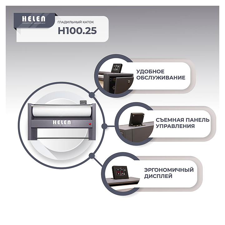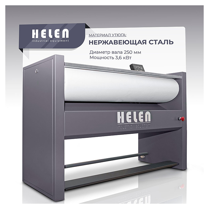 Гладильный каток HELEN H 100.25 используется в прачечных, гостиницах, салонах красоты, больницах и детских учреждениях для глажения различного белья с остаточной влажностью 15-20%. Оборудование имеет простую конструкцию, безопасно, надежно и подходит для применения даже неопытными работниками. Выглаженное белье возвращается в сторону оператора, позволяя устанавливать каток у стены. Мульда выполнена из нержавеющей стали, обмотка вала - металлическая шерсть.