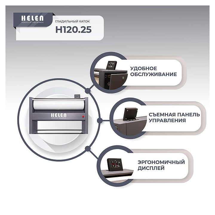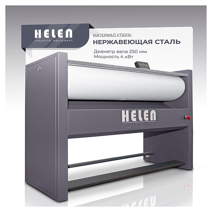 Гладильный каток HELEN H 120.25 используется в прачечных, гостиницах, салонах красоты, больницах и детских учреждениях для глажения различного белья с остаточной влажностью 15-20%. Оборудование имеет простую конструкцию, безопасно, надежно и подходит для применения даже неопытными работниками. Выглаженное белье возвращается в сторону оператора, позволяя устанавливать каток у стены. Мульда выполнена из нержавеющей стали, обмотка вала - металлическая шерсть.