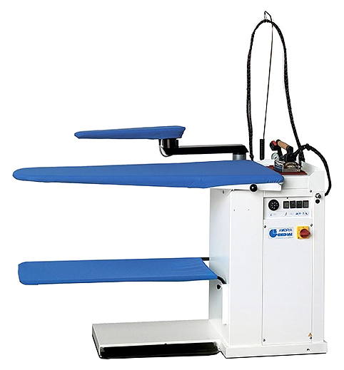 Профессиональный гладильный стол Ghidini Ambria используется в прачечных, отелях, гостевых домах и отелях для глажки белья и одежды. Модель оснащена встроенным парогенератором, встроенным насосом, поворотной рукавной формой с наддувои, рельсами и блоком освещения.