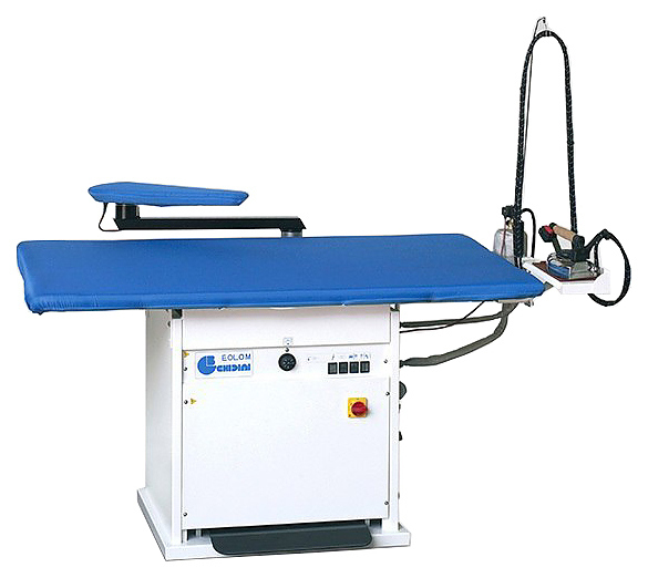 Профессиональный гладильный стол Ghidini EOLO M используется в прачечных, отелях, гостевых домах и отелях для глажки белья и одежды. Модель c вакуумным прижимом и нагревом оснащена встроенным парогенератором, поворотной рукавной формой, паровым утюгом.
