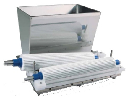 Головка валкового типа Mimac используется совместно с отсадочно-дозировочными машинами Babydrop Easy в пекарнях и кондитерских, на предприятиях пищевой промышленности и общественного питания для дозировки теста с включениями типа орехи, цукаты и т.д.