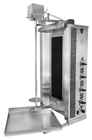 Гриль для шаурмы Yukon MED-04 используется на предприятиях общественного питания и торговли для приготовления мясной начинки для шаурмы. Модель оснащена вертикально-ориентированным жарочным блоком с 4 нагревательными элементами и электромеханической панелью управления.