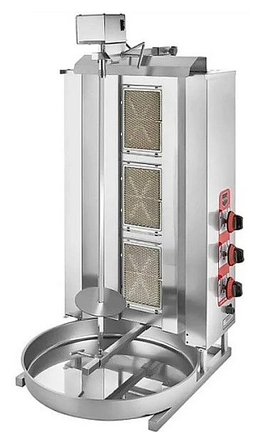 Гриль для шаурмы Eletto D06MZ предназначен для обжарки различных типов и видов мяса в больших количествах на предприятиях общественного питания: в барах, кафе, закусочных и бистро. Модель оснащена 3 зонами нагрева, электрическим приводом и поддоном для жира. Корпус выполнен из нержавеющей стали.