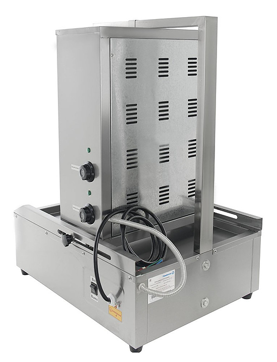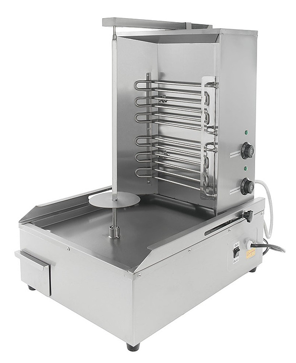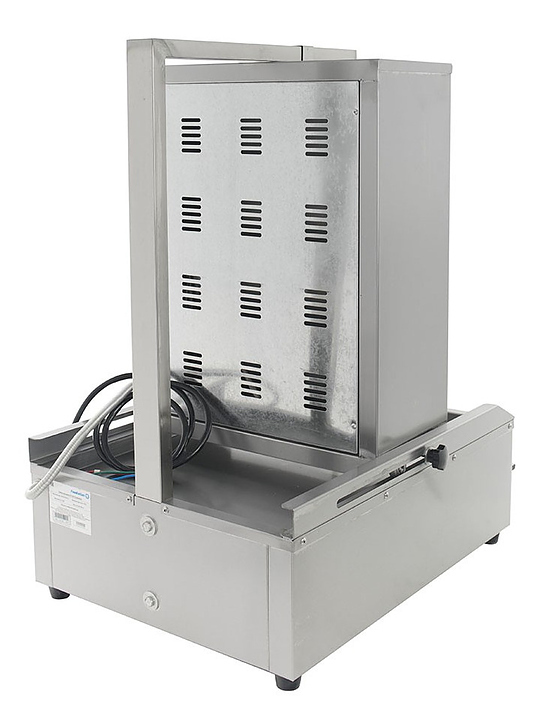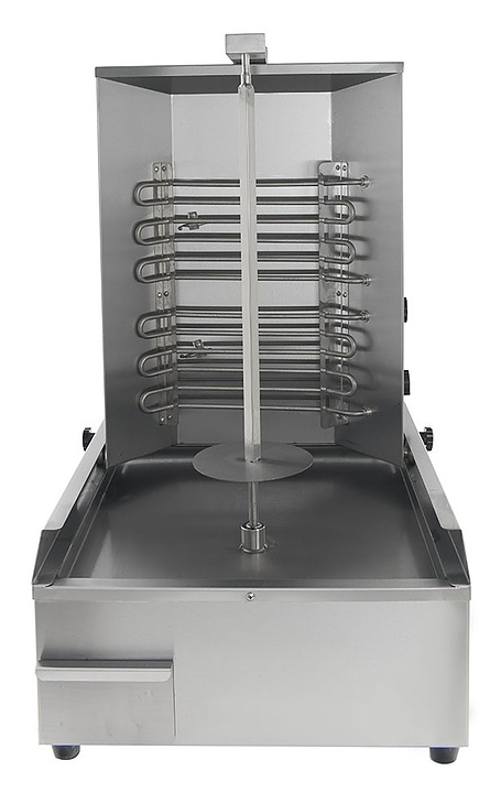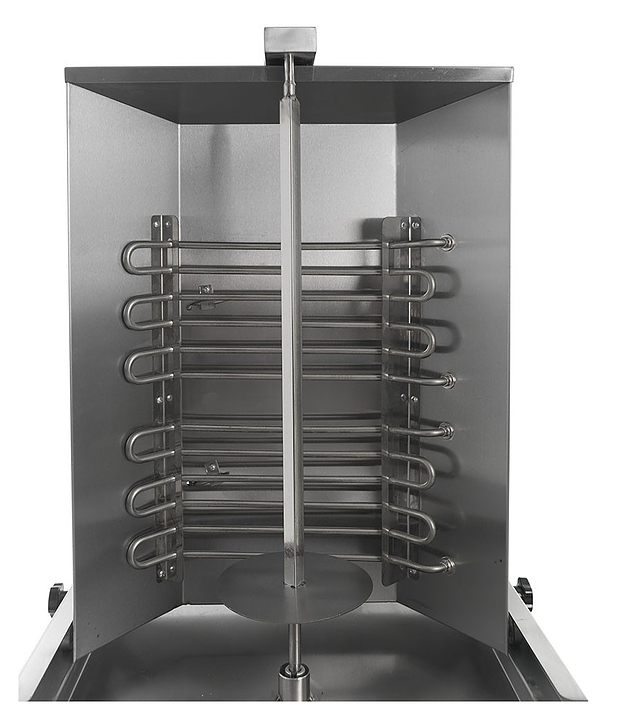 Гриль для шаурмы Foodatlas CY-50 предназначен для обжарки мяса на предприятиях общественного питания и торговли. Вертикальная модель оснащена поддоном для масла, 3 нагревательными элементами и 2 регуляторами температуры. Корпус выполнен из нержавеющей стали.