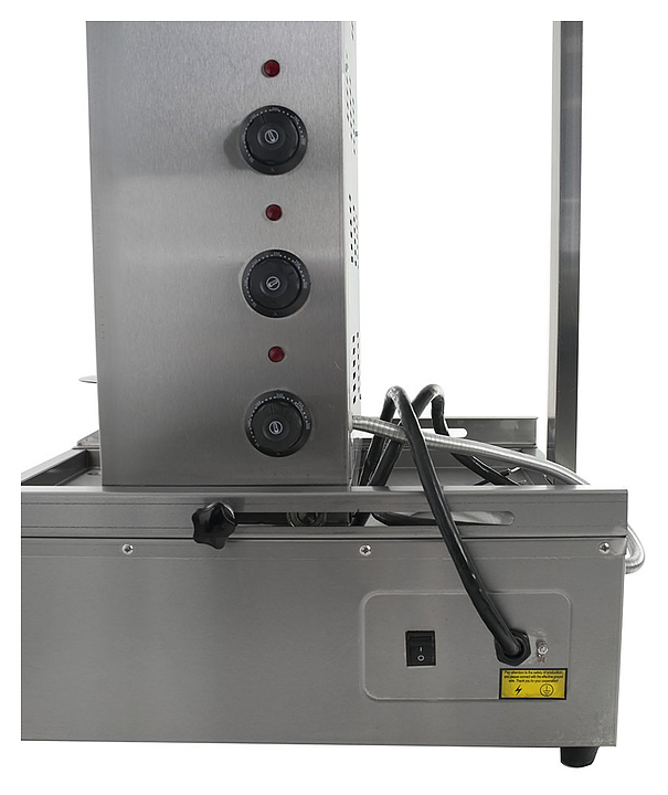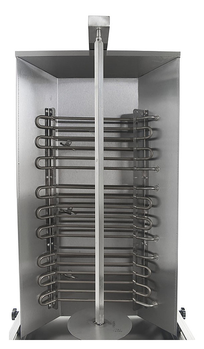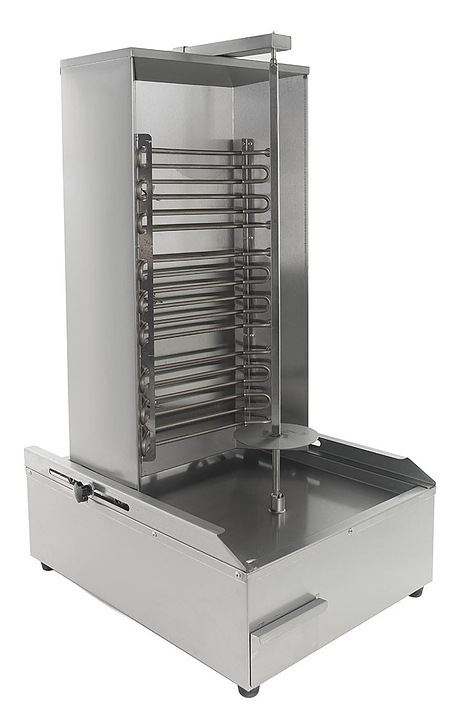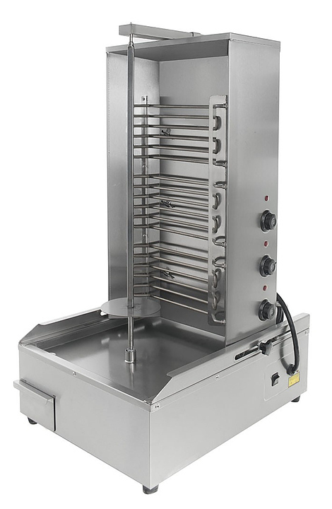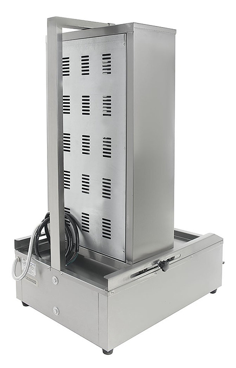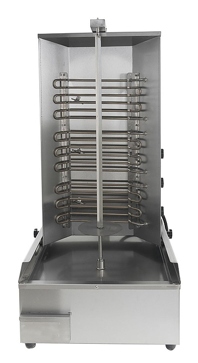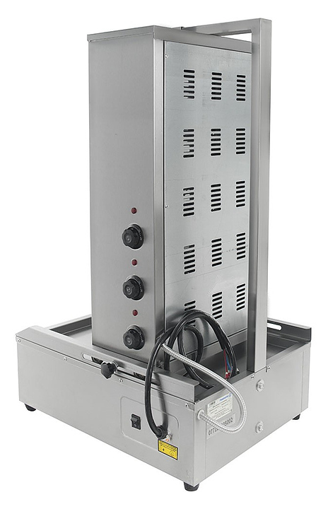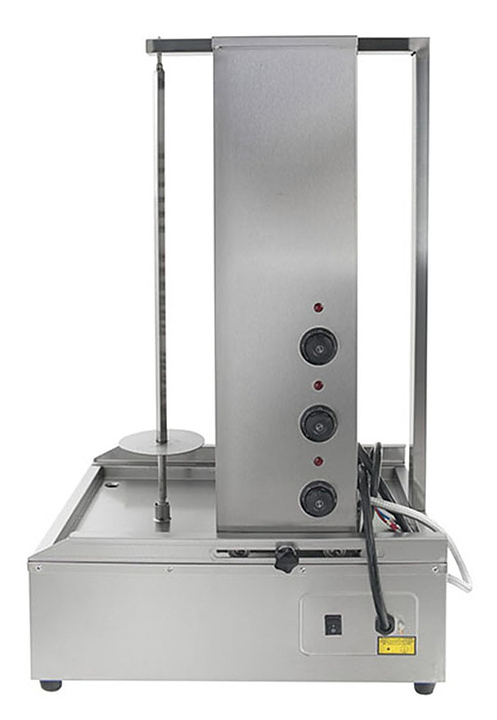 Гриль для шаурмы Foodatlas CY-70 предназначен для обжарки мяса на предприятиях общественного питания и торговли. Вертикальная модель оснащена поддоном для масла, 3 нагревательными элементами и 2 регуляторами температуры. Корпус выполнен из нержавеющей стали.