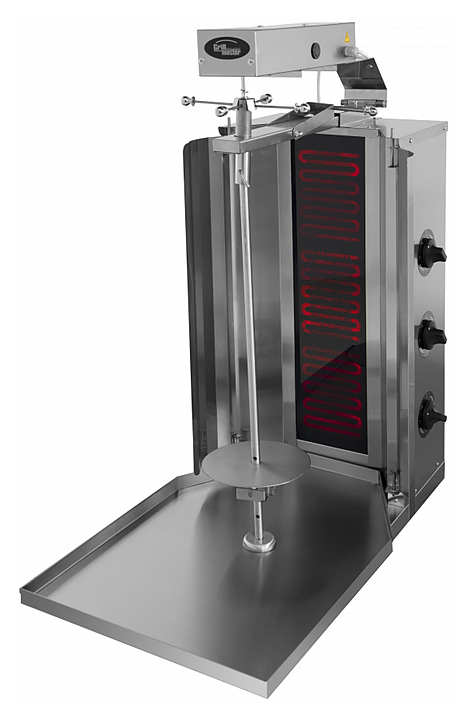 Электрический гриль для шаурмы Grill Master Ф3ШМС/1 предназначен для запекания специально подготовленного свиного, говяжьего, бараньего и куриного мяса, используемого для приготовления шаурмы, на предприятиях общественного питания и торговли. Модель оснащена 3 независимо регулируемыми нагревательными элементами и лотком для сбора жира. Все корпусные элементы выполнены из нержавеющей стали.