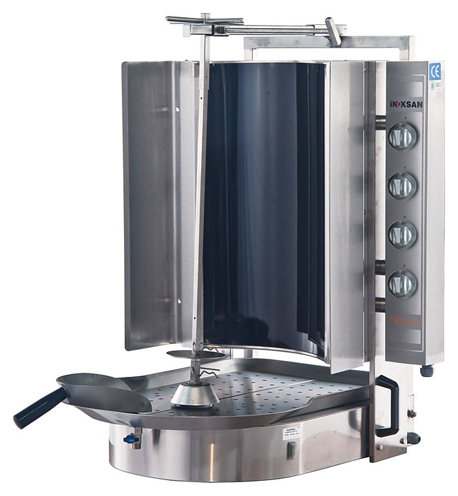 Гриль INOKSAN INO-PDE403 используется для автоматического обжаривания мяса, используемого для приготовления шаурмы. Мясная вырезка насаживается на вертикальный вращающийся шампур в оптимальной близости к нагревательным элементам, обеспечивая идеальное прожаривание и исключая пригорание. Круговые нагревательные элементы, скрытые под керамическим стеклом с высокой теплопроводностью, способствуют равномерному приготовлению мяса.