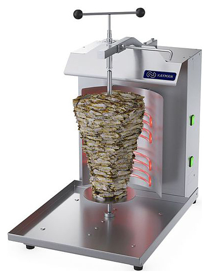 Электрический гриль KAYMAN ШЭ-ОЦ-2-РП А используется на предприятиях общественного питания и торговли для приготовления мясной начинки популярного блюда шаурма (шаверма). Модель оснащена 2 изогнутыми ТЭНами, отражателями тепла и защитным козырьком, препятствующим обжиганию рук и перегреву электропривода. Корпус выполнен из нержавеющей стали, все элементы, контактирующие с пищей - из материалов, разрешенных для контакта из нержавеющей стали.
