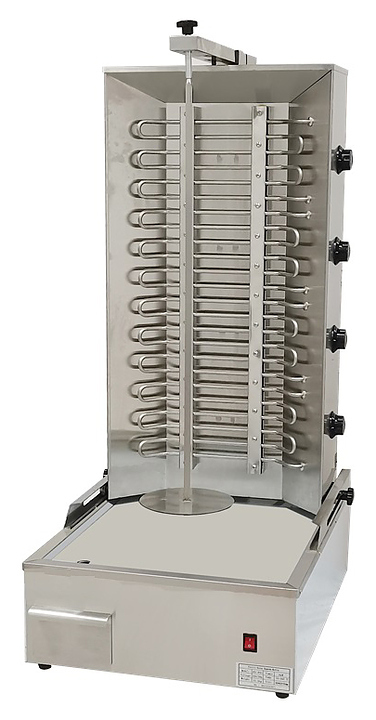 Гриль Kocateq GH 8DKE предназначен для обжарки большого количества различных видов мяса и птицы при приготовлении начинки для шаурмы, донера и других блюд на предприятиях общественного питания и торговли. Размещение на вертикальном вертеле обеспечивает равномерное приготовление. Модель оснащена 4 зонами нагрева с индивидуальной регулировкой, электроприводом вращения спицы и съемным лотком для сбора жира. Корпус выполнен из нержавеющей стали AISI 201, которая отличается прочностью и долговечностью.