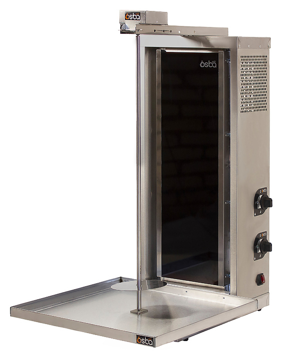 Гриль для шаурмы Osba 3.3S предназначен для обжарки большого количества различных видов мяса и птицы для приготовления начинки для шаурмы, донера и других блюд на предприятиях общественного питания и торговли. Модель оснащена 3 нагревательными элементами и керамическим стеклом для защиты спирали от попадания масла. Корпус выполнен из нержавеющей стали AISI 304.
