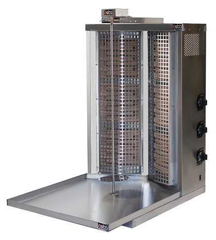 Гриль для шаурмы Osba 3.6K+ предназначен для обжарки большого количества различных видов мяса и птицы для приготовления начинки для шаурмы, донера и других блюд на предприятиях общественного питания и торговли. Модель оснащена 6 нагревательными элементами и защитной сеткой. Корпус выполнен из нержавеющей стали AISI 304.