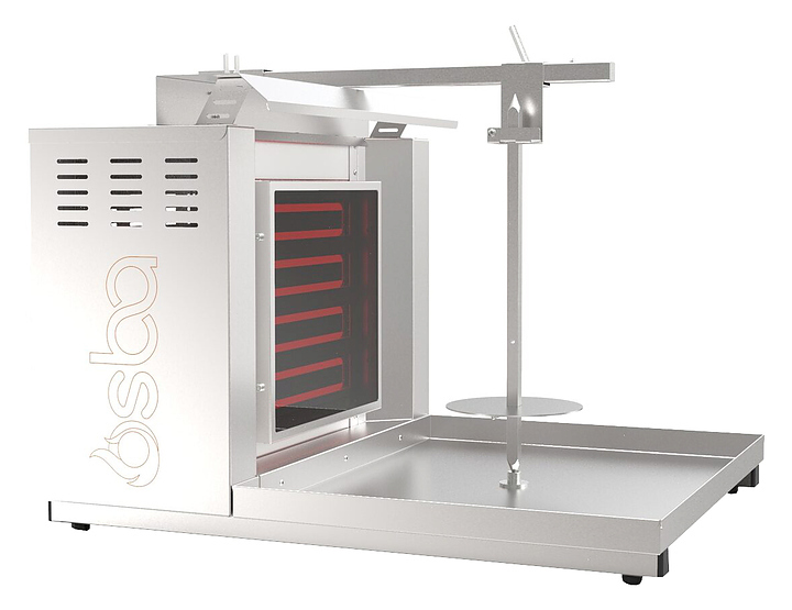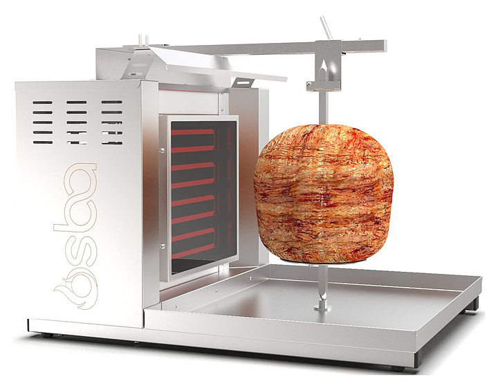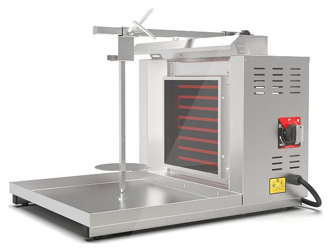 Электрический гриль Osba SH1-C предназначен для обжарки большого количества различных видов мяса и птицы при приготовлении начинки для шаурмы, донера и других блюд на предприятиях общественного питания и торговли. Размещение на вертикальном вертеле и ручное управление вращением обеспечивают равномерное приготовление. Модель оснащена защитным козырьком и 1 зоной нагрева с плавной регулировкой мощности. Покрытие на нагревательных элементах гарантирует легкую очистку. Перемещение вертела вперед и назад позволяет регулировать расстояние между мясом и нагревом при разном количестве заготовки. Корпус выполнен из пищевой нержавеющей стали, которая отличается прочностью и долговечностью, защита нагревателей - из жаростойкой стеклокерамики.