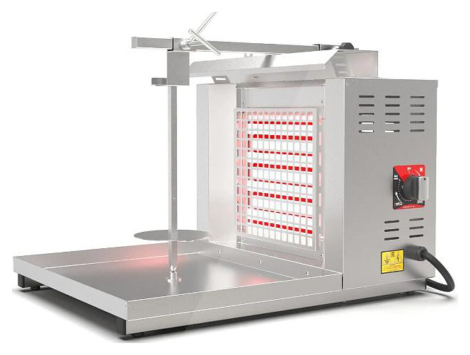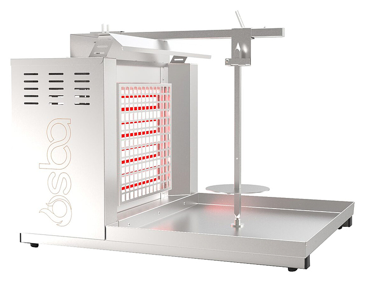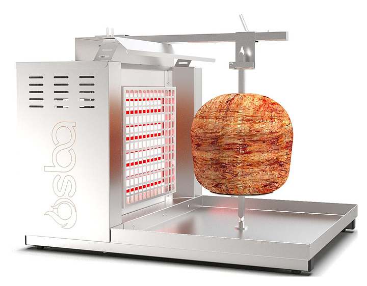 Электрический гриль Osba SH1-L предназначен для обжарки большого количества различных видов мяса и птицы при приготовлении начинки для шаурмы, донера и других блюд на предприятиях общественного питания и торговли. Размещение на вертикальном вертеле и ручное управление вращением обеспечивают равномерное приготовление. Модель оснащена защитным козырьком и 1 зоной нагрева с плавной регулировкой мощности. Перемещение вертела вперед и назад позволяет регулировать расстояние между мясом и нагревом при разном количестве заготовки. Корпус и решетка нагревательных элементов выполнены из нержавеющей стали, которая отличается прочностью и долговечностью.